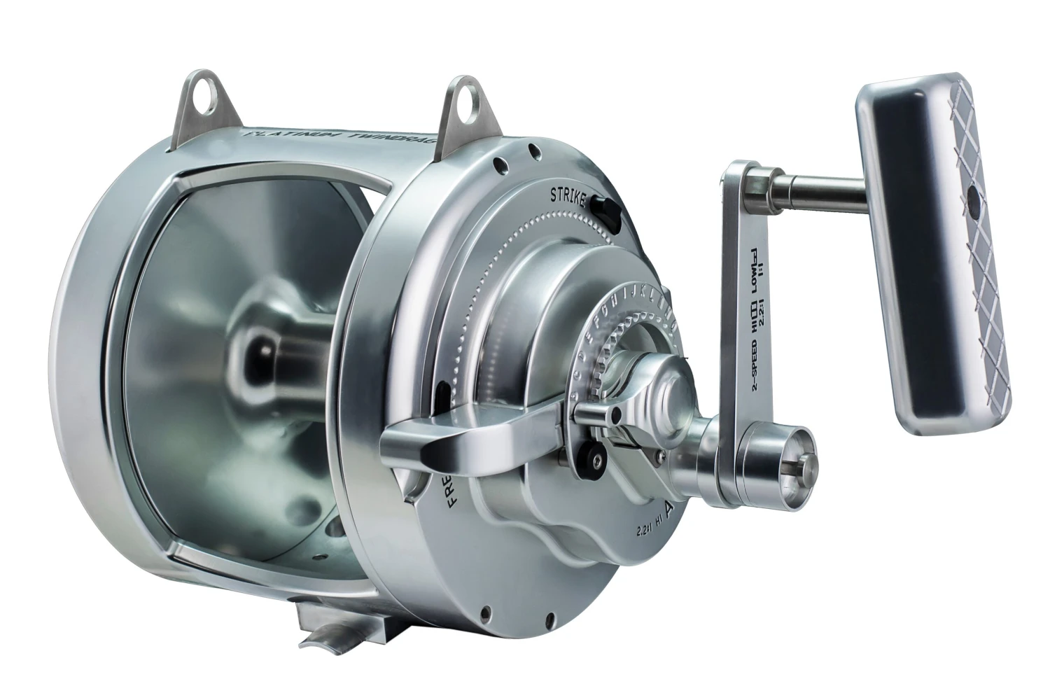 The ATD Platinum TwinDrag® is the Flagship series of the Accurate line. Designed with Accurate’s patented TwinDrag® feature to deliver smooth, powerful drags, the larger ATD models put out in excess of 100 pounds of drag for targeting giant Bluefin Tuna and Marlin. These reels have been internally designed to handle high drag loads by applying an even amount of pressure on both sides of the reel with two synced dogs to provide the ultimate stopping power. The ATD offers a smooth, even drag that is consistent through the fight with little to no start up inertia, alleviating the possibility of high drag spikes when line comes off the reel. If you are looking to harness the ultimate stopping power for big game fishing, the ATD is the finest reel on the market of its kind.