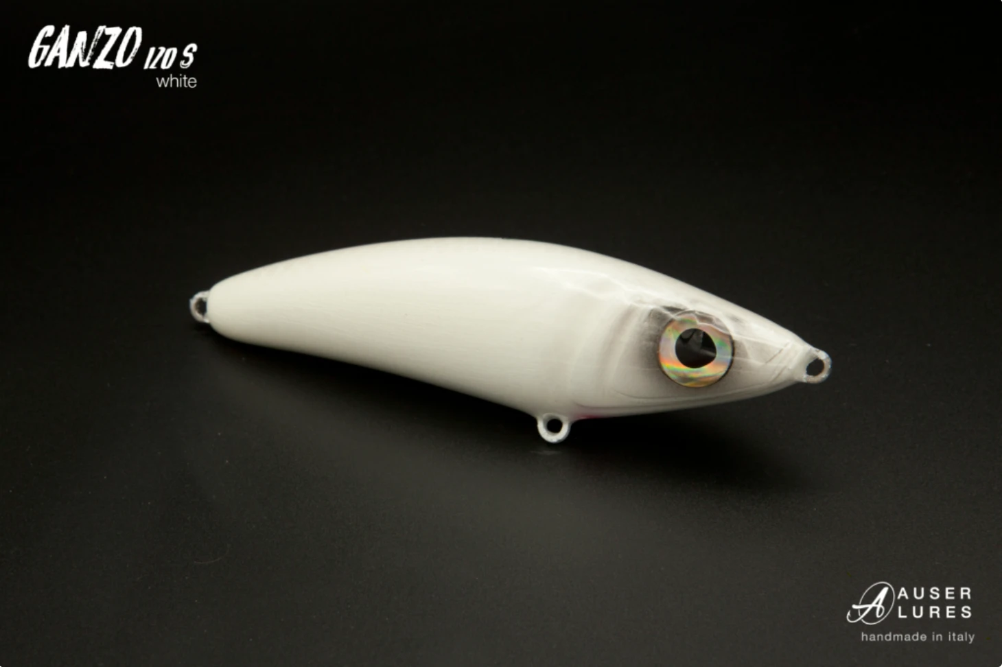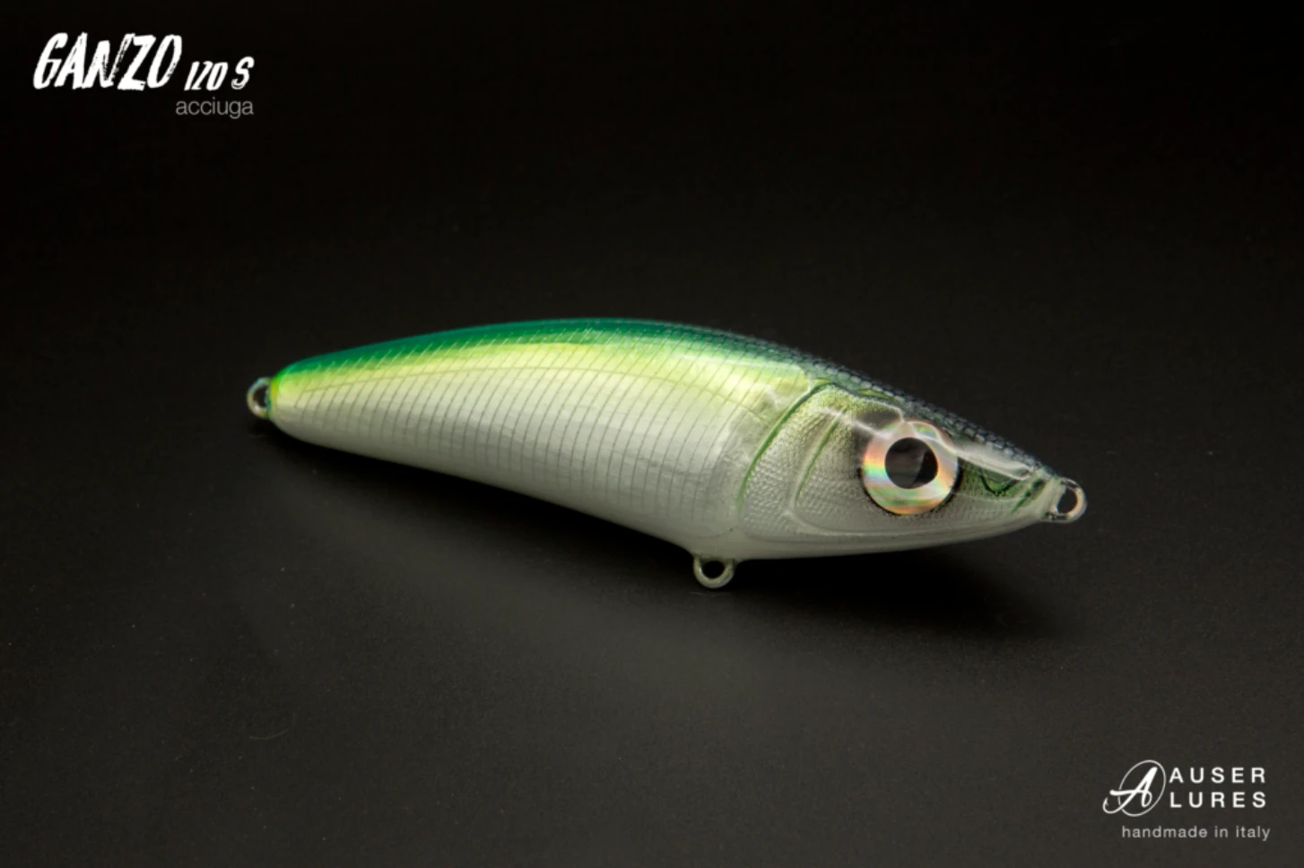 Hand made in Italy. The Ganzo 120S is a small sinking stickbait designed to catch bluefin tuna, and many other pelagic species, very easy to swim and has an enticing wobble while sinking. It’s small size and weight makes it cast very well.