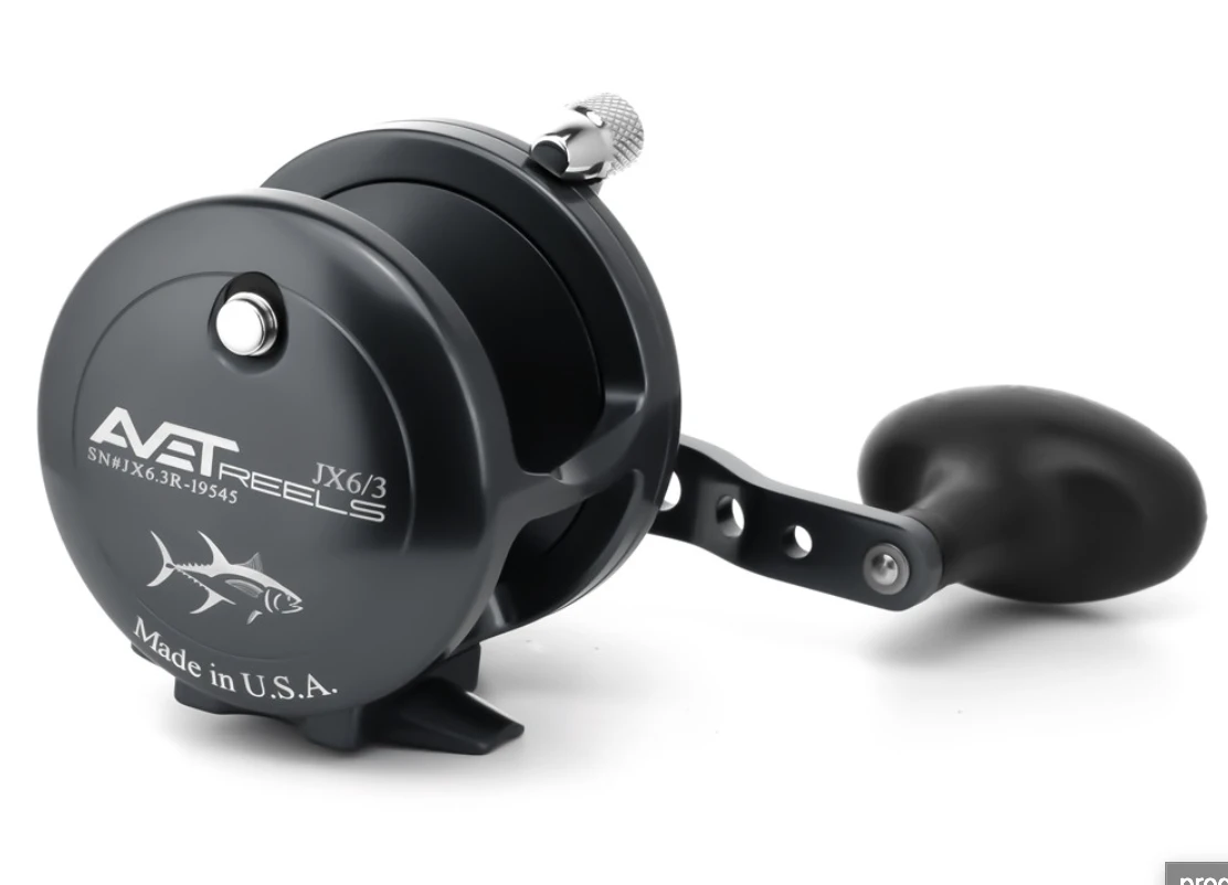 Avet Reels proudly produces aluminum lever drag reels right here in the USA. These reels are known for their usage on the west coast for casting on Long Range style fishing trips. Here in the Northeast, we like to use the JX 6/3 as a jigging reel for tunas, and other hard-fighting species. Some people refer to this model as the Jigging-X. Due to the size and line capacity of these reels, they are also a good choice for cod fishing and tilefishing purposes.