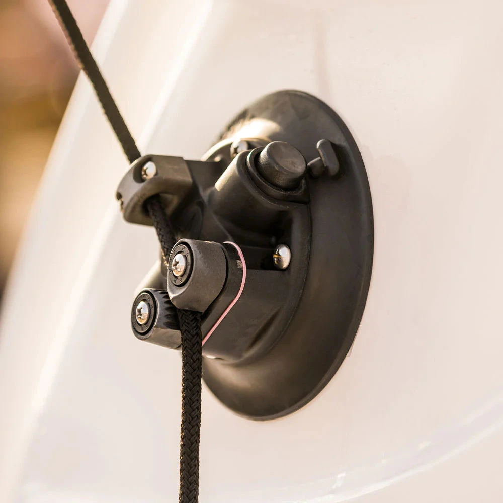 An easy way to secure your halyards in any fishing or running position without installing permanent hardware to your boat. It can also secure a center rigger halyard in an easy-to-reach spot or hold fenders. This price is for one cam cleat.