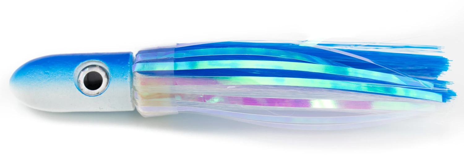 Joe Shute have come out with a new Keel Weighted version of their highly productive tuna lures. This head shape is designed with more of the weight on the bottom side of the head, so the lure will run in a more up-right position in the water helping the ballyhoo track better. The head of the lure has a 1/2 inch opening in the rear of the head, which is designed for those fishermen that like to use a ballyhoo spring. This opening will allow the spring to seat over half way up inside the hole, effectively locking the ballyhoo in place. This head design can also be used with a standard pin rig or a pin-less rig as well. The 5 oz weight of the lure helps track better in rougher seas and will give you more depth on calmer days, especially when run in the long rigger position. Aside from ballyhoo rigging, you can also run these lures rigged with a soft plastic trailer such as a Hogy, Ron-Z, or Got Stryper pin tail (this configuraton is very popular for billfish operations).Â