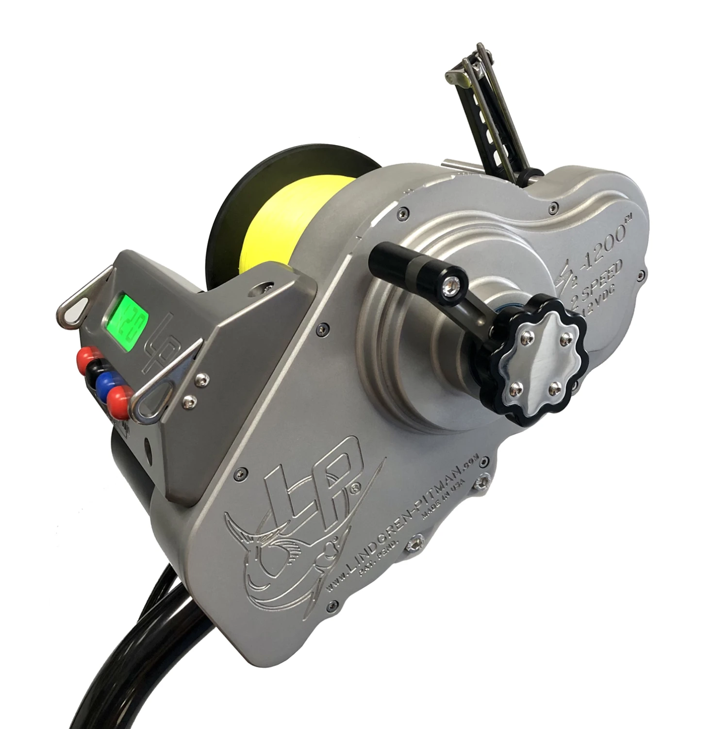 The all new cantilever spool design allows for a completely sealed drive system for long reliable, maintenance free use. The gear driven level winder line wraps automatically for hands off carefree retrieval. It is the most rugged and ergonomically designed electric reel available. Two types of spools are available for these reels, the GFN (Glass Filled Nylon) and Titanium for extra heavy duty and wire line fishing purposes.