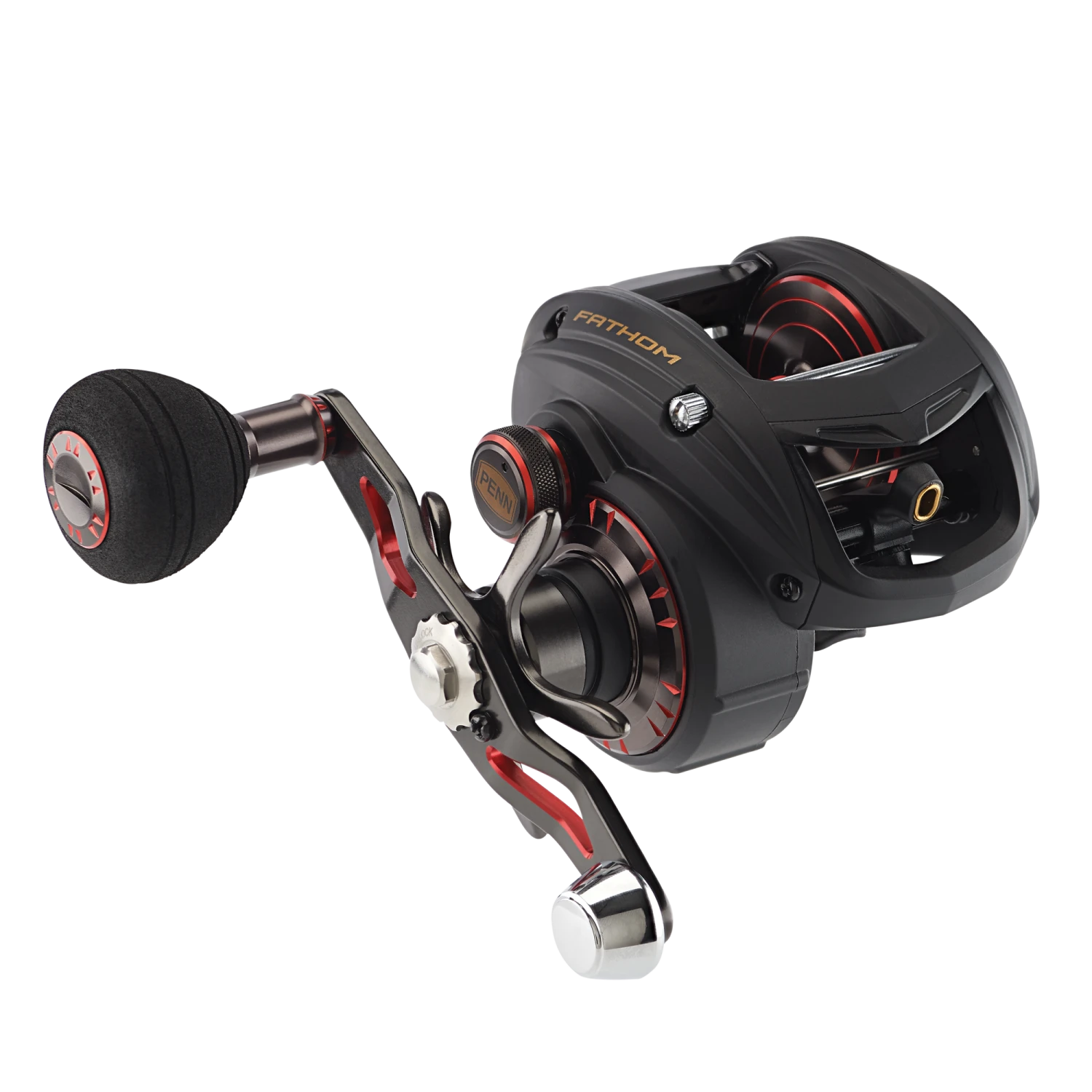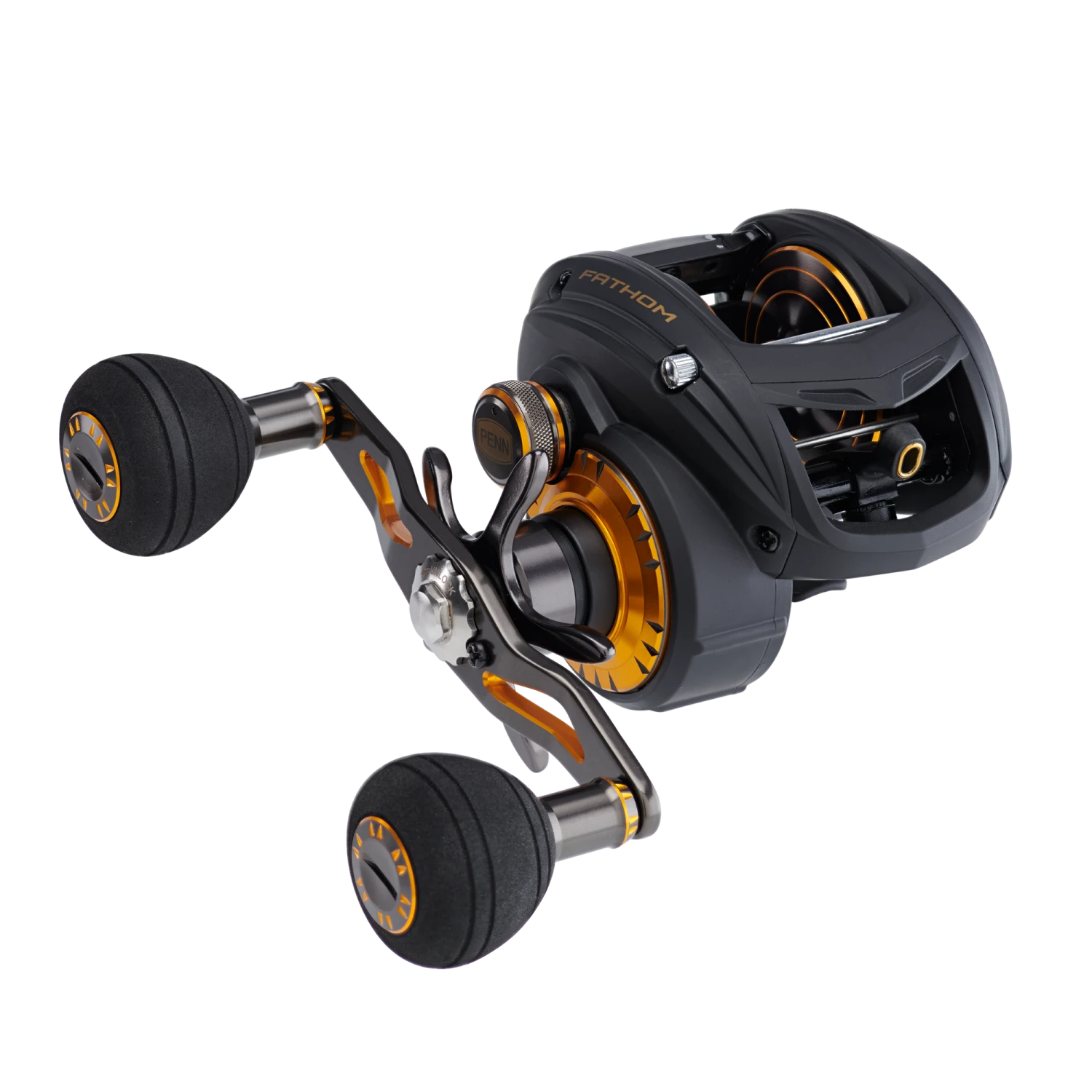 The PENN® Fathom low profile baitcast reels offer all the features you need to tackle the toughest saltwater fish. The Full Metal Body and Right Side plate, matched with a brass main gear and bearing supported pinion offer a drivetrain with unparalleled power, while the TiN Coated Level Wind System and Synchronized Drag and Level Wind system (*400 size only) give extra durability under high drags. Available in 200, 300 and 400 sizes with both standard and high speed gear ratios. Left hand models available in standard gear ratio only.