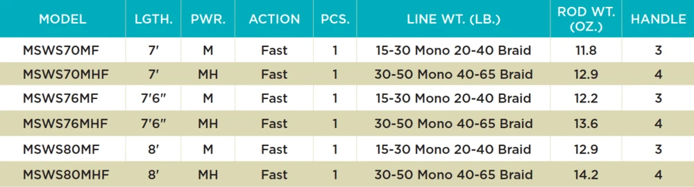 - Incredibly lightweight and durable saltwater boat, pier and jetty rods.