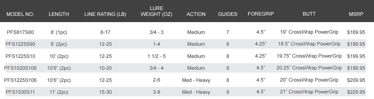Our Paraflex Surf rods are manufactured using the same Duratech epoxy and graphite blend as in our successful Paraflex Boat and Jigging series. Thin diameter, high density graphite walls, and a low separation point on the two piece models give these rods the perfect actions for throwing bait and lures of all kinds. We have combined Fuji® Low Rider and K-frame tangle free guides with Alconite rings for maximum casting distance. CrossWrap PowerGrip handles allow for a comfortable grip for a long day in the surf. Longer casting, light weight blanks, and anti-tangling guides with the strength you have come to know from Paraflex make these rods another best in class for Star Rods.