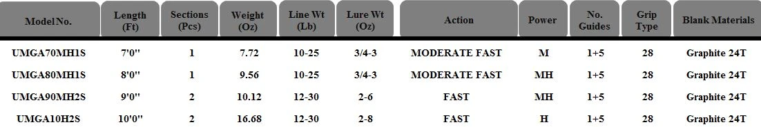 With its outstanding cosmetics, TICA’s UMGA surf rods are available in the four most popular lengths and actions. While the 7’ and 8’ models are perfect for pier, jetty, or small canals, the 9’ and 10’ rods are the ideal do-everything rods. With unbeatable value, the UMGA rods are constructed from strong but sensitive TC2 graphite material and a light, sensitive blank with high strength and perfect action. Robust Zirconia ring guides, a unique TICA sliding foldable hook keeper, and superior non-slip cork tape handle give unparalleled performance at these price points. With its eye-catching cosmetics, the UMGA performs just as beautifully as it looks out on the water and is a worthy addition to any angler’s arsenal.